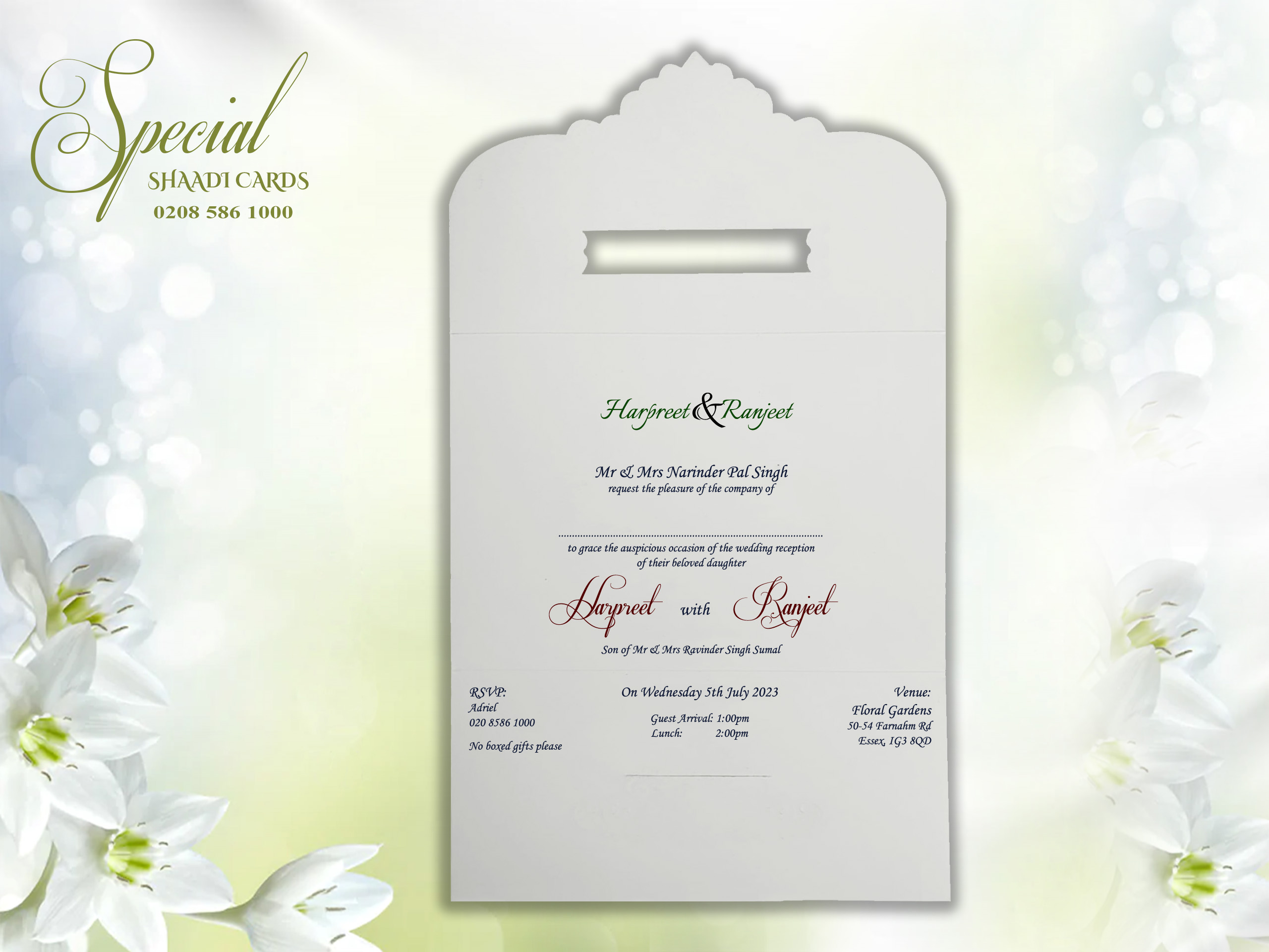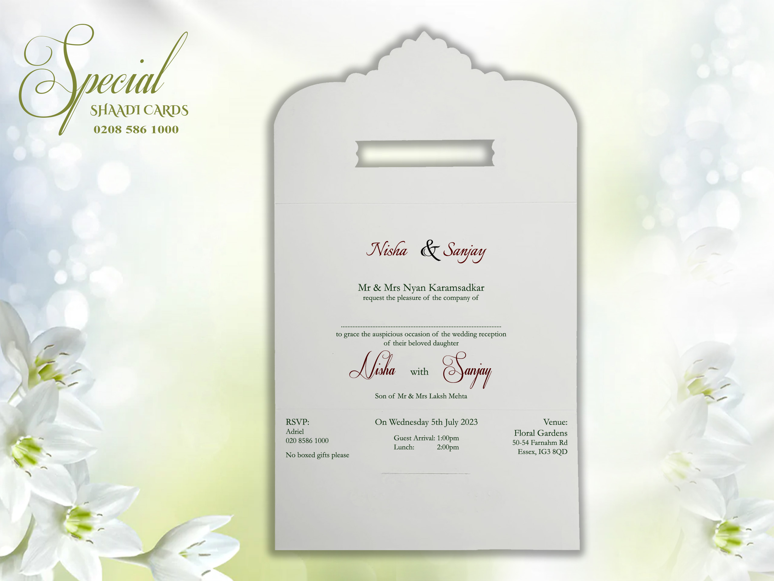 This card is supplied with an envelope and is personalized with your details. The printing is done on the card itself instead of a separate insert. Additional inserts can be purchased for other functions or to add more information such as directions or RSVPs. If you require additional inserts please also add that product to your cart. All our products are printed in the UK at our London warehouse. Please pop in to see the cards for yourself.