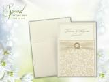Cream Embellished Wedding Card with Embossed Velvet Finish