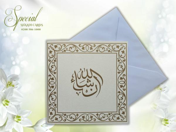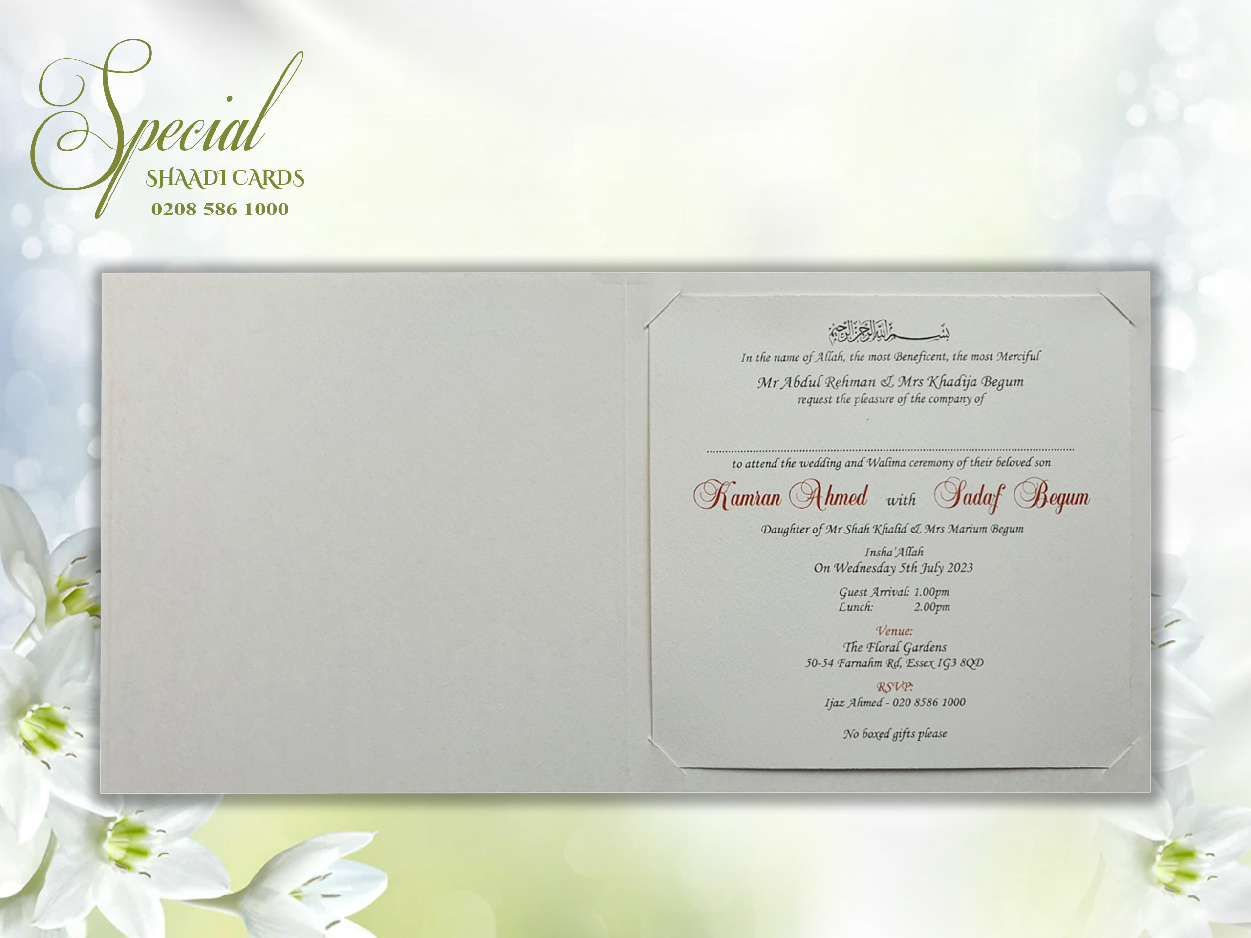 Ivory Muslim Wedding Invite with Litho Printed Floral Pattern