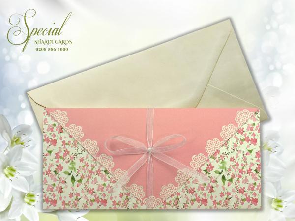 Pink Floral Ribbon Embellished Single Sheet Wedding Card