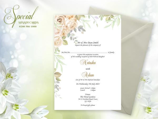 This card is supplied with an envelope and is personalized with your details. The printing is done on the card itself instead of a separate insert. Additional inserts can be purchased for other functions or to add more information such as directions or RSVPs. If you require additional inserts please also add that product to your cart. All our products are printed in the UK at our London warehouse. Please pop in to see the cards for yourself.
