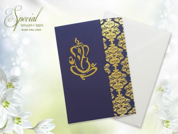 Two Fold Blue and Gold Foiled Hindu Wedding Card